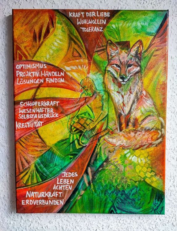 . . . Die Analyse sowie das Bild haben mich stark beeindruckt. Seitdem ich die Analyse gelesen habe und das angenommen habe habe ich keine Rückenschmerzen mehr. Es war und ist die ganze Zeit immer da gewesen dieses Vertrauen anscheinend brauchte ich es schwarz auf weiß um es zu verinnerlichen.Und das Bild ist der Hammer seitdem ich es aus dem Paket genommen habe berührt es mich. Und mit den fast gleichen Farben mal ich gerne Mandalas. Jedenfalls Danke ich wünsche Ihnen ein schöne Wochenende Lg G.H.